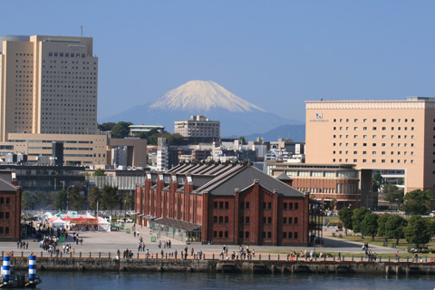 横浜の一番の絶景スポット、大さん橋から富士山を段々アップして行きます。