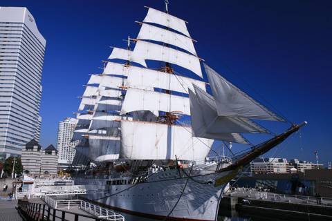 日本丸は昔は船乗りを育てるための研修船として使われていたのですが、現在は横浜港に停泊していて、海に繰り出すことはありません。