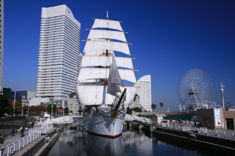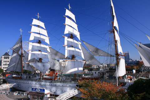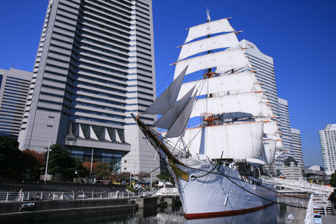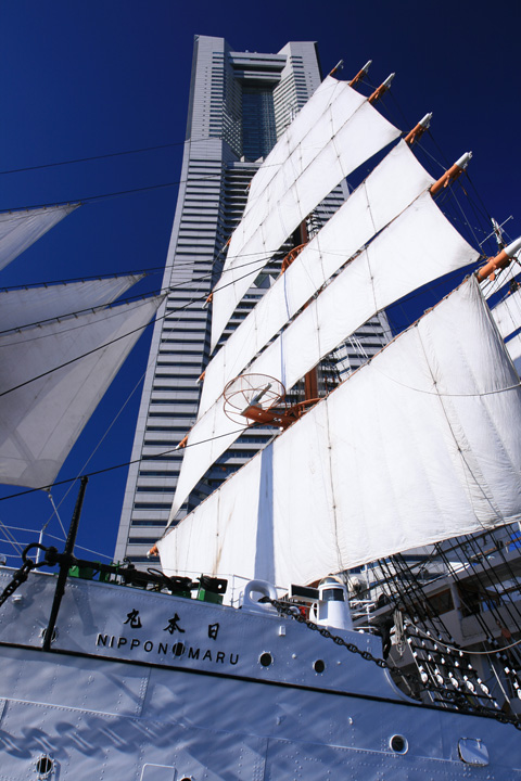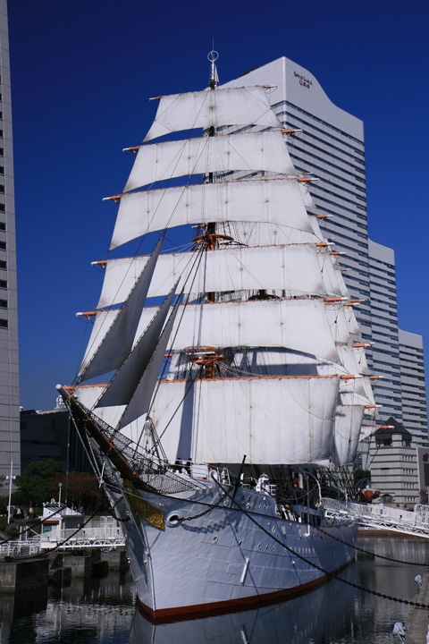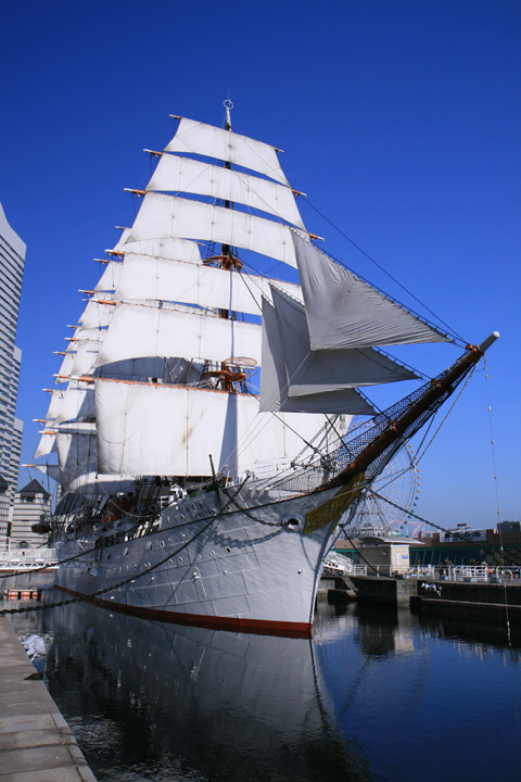 以前、日本丸が帆を張っていたので、撮りに行ったら、時間が遅く、半分陰になってしまった。