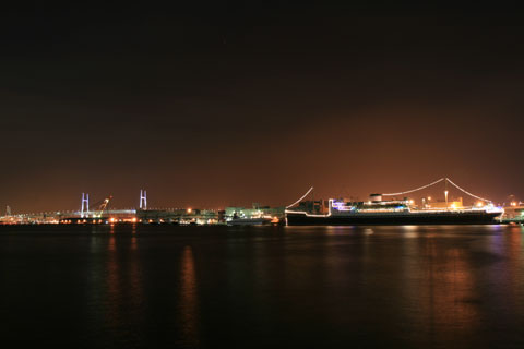 大さん橋という場所に、客船がよく来るのですが、なかなか夜見ると綺麗です。