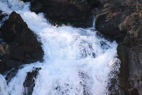 まったく同じ華厳の滝なんですが、上はまるで時を止めたような一瞬の世界。