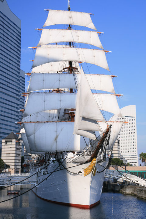 日本丸は昔は船乗りを育てるための研修船として使われていたのですが、現在は横浜港に停泊していて、海に繰り出すことはありません。