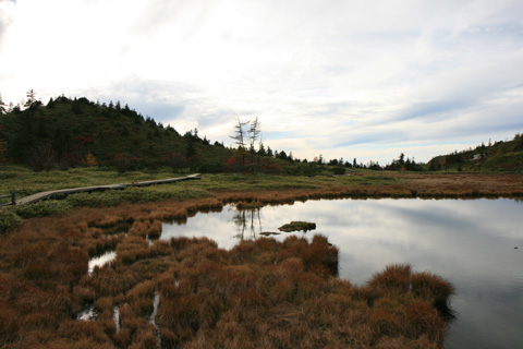 湿地帯には木道があり、まるで尾瀬のような感じでした。