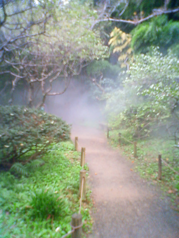 三渓園は横浜にある日本庭園なのですが、森の中に人工的な霧を発生させる作品です。