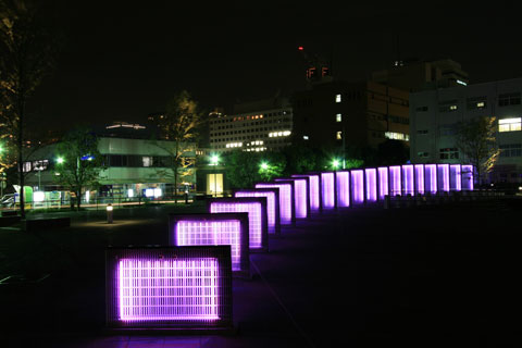 その貨物車のターンテーブルをイメージした、オブジェがライトアップされていて綺麗なんです。