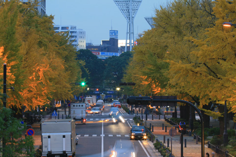 今年、日本大通の近くに、象の鼻パークという新しい公園が出来て、そこから、日本大通を一望できるようになったので、その新スポットからイチョウの紅葉を撮ってきました。