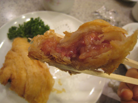 アップルパイのような生地の中に、チャーシューの細切れを絡めた餡が入っています。