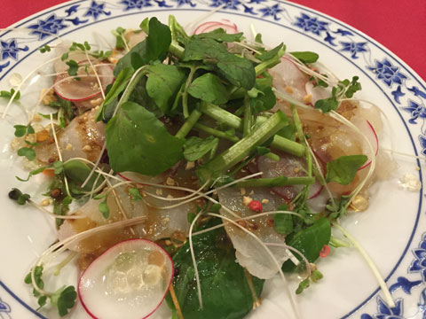 「カルパッチョ」「ハンバーグ」というと、思いっきり洋食っぽいですが、先日、この2つが重慶飯店別館のランチメニューに登場しました。
