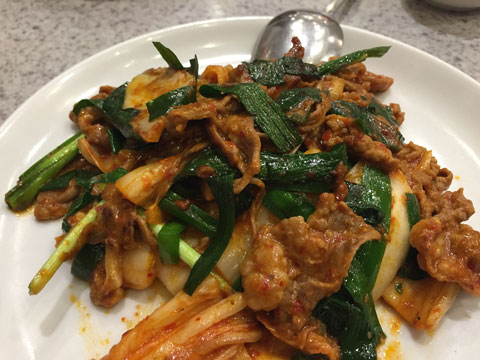キムチの炒め物は豚が多いですが、今回は牛です。